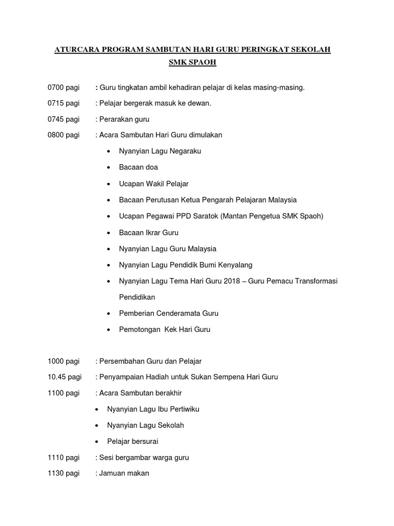 Aturcara Program Hari Guru Pdf