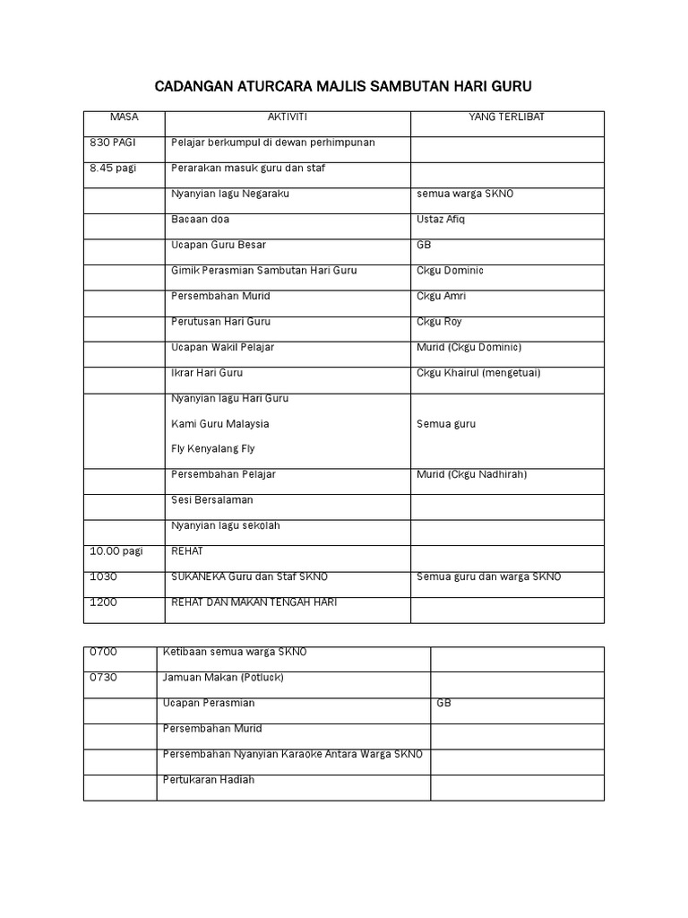 Aturcara Majlis Sambutan Hari Guru Pdf